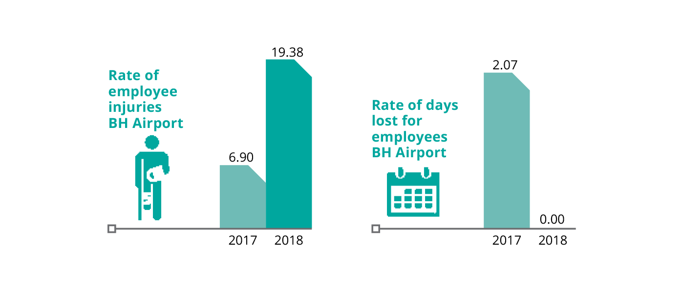 On the occupational safety front, concessions work to raise employee awareness, monitor correct use of protective equipment and other aspects during field inspections, and evaluate potential risks to people, proposing action plans. With these initiatives, BH Airport has been able to lower rates of accident severity and frequency, for example.