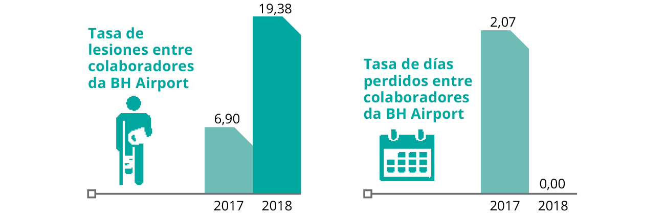 Con relación a seguridad del trabajo, las concesiones actúan con el propósito de concienciar a los colaboradores, monitorizar el uso correcto de los equipamientos de protección y otros aspectos en las inspecciones de campo, además de evaluar potenciales riesgos para las personas, proponiendo planes de acción. Con esas iniciativas, por ejemplo, BH Aiport ha conseguido reducir los índices de gravedad y de frecuencia de accidentes.