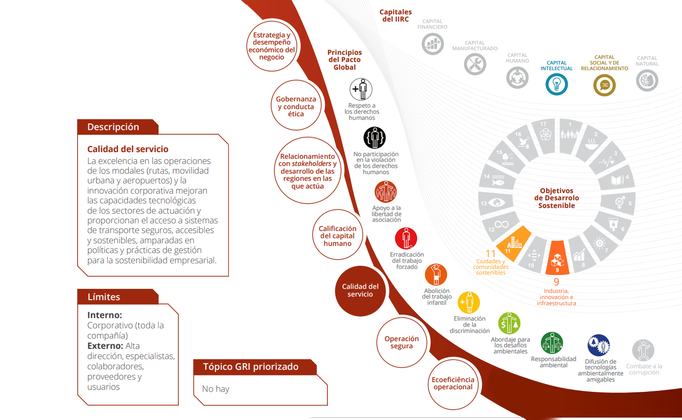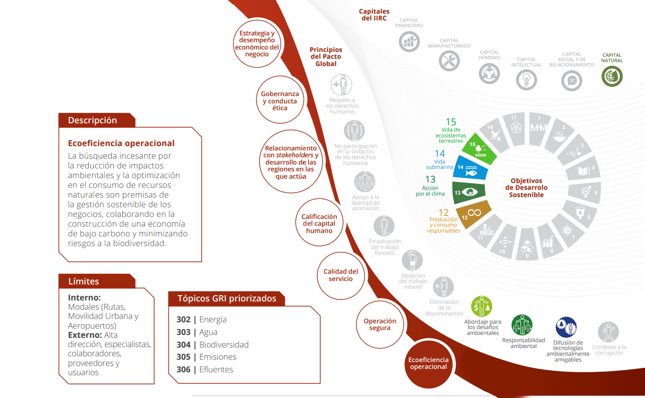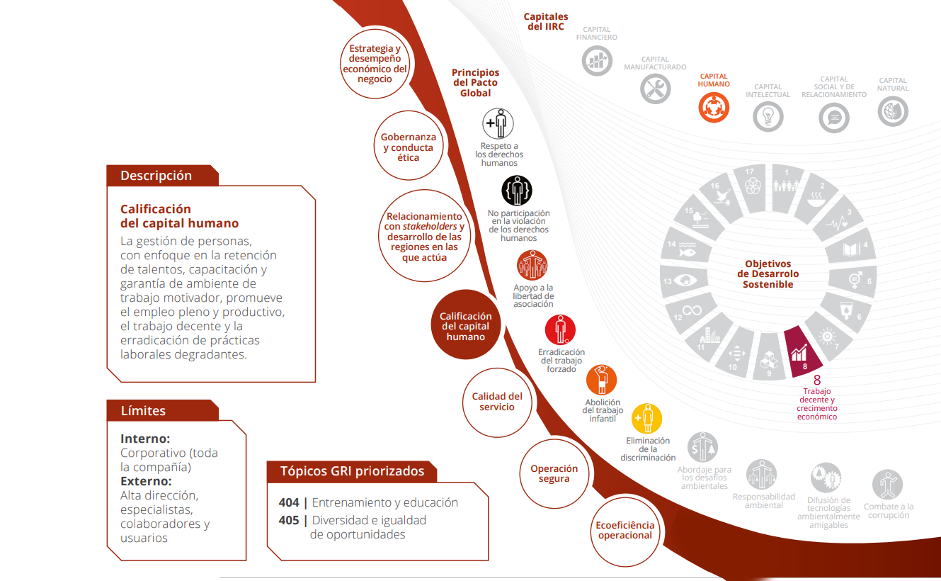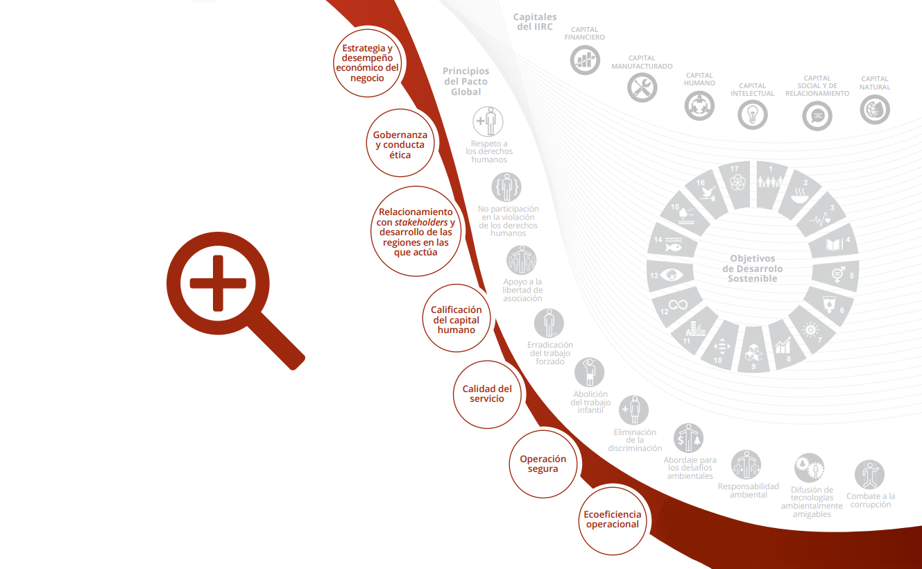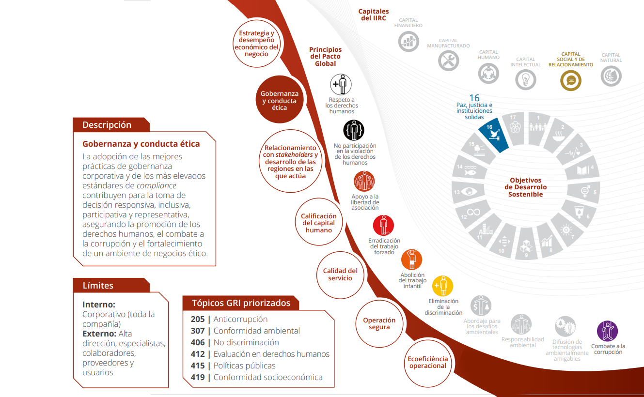 Los temas materiales que nortean el informe permanecen los mismos con relación al año anterior y fueron definidos después de un amplio proceso de compromiso interno y externo y de la maduración de la gestión sobre esos tópicos. La priorización de los temas partió de los insumos de participación directa y análisis documentales realizados en 2016 y tuvo como principales criterios los riesgos y oportunidades asociados a cada tema, los impactos significativos de las actividades del Grupo y la relación de esos aspectos con los Objetivos de Desarrollo Sostenible (ODS).